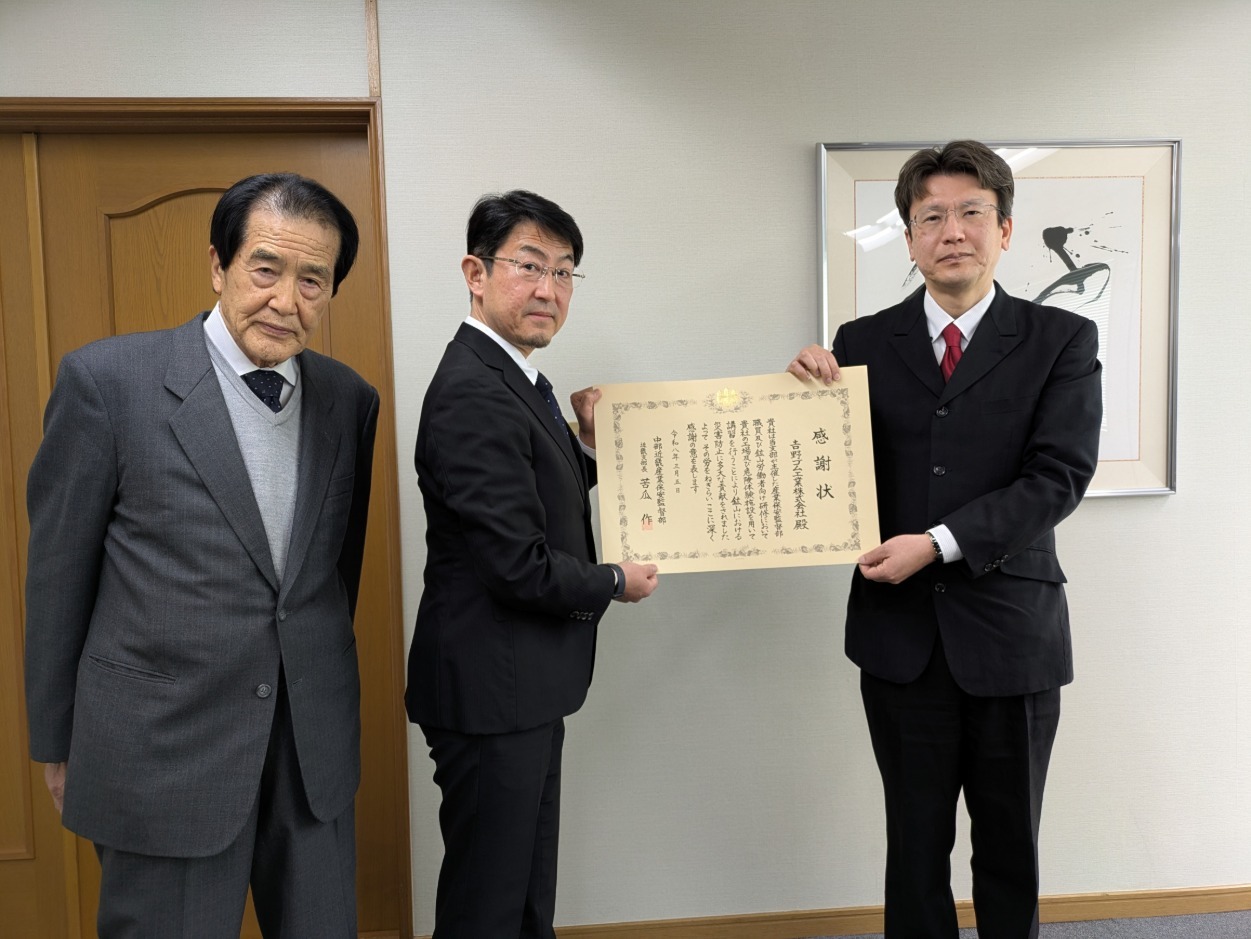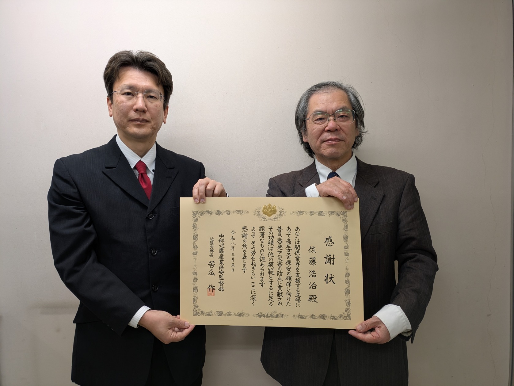 令和8年3月5日、中部近畿産業保安監督部近畿支部の施策や活動において、その推進や支援に顕著な活動実績が認められた次の方々に対し、中部近畿産業保安監督部近畿支部長から感謝状を贈呈しました。